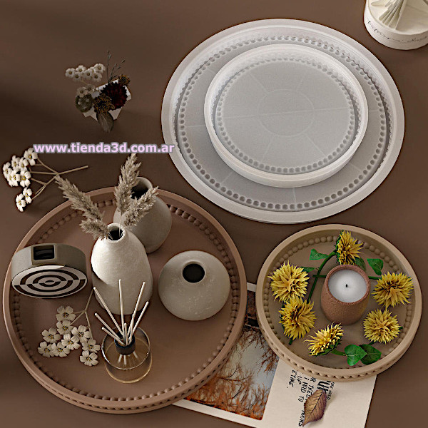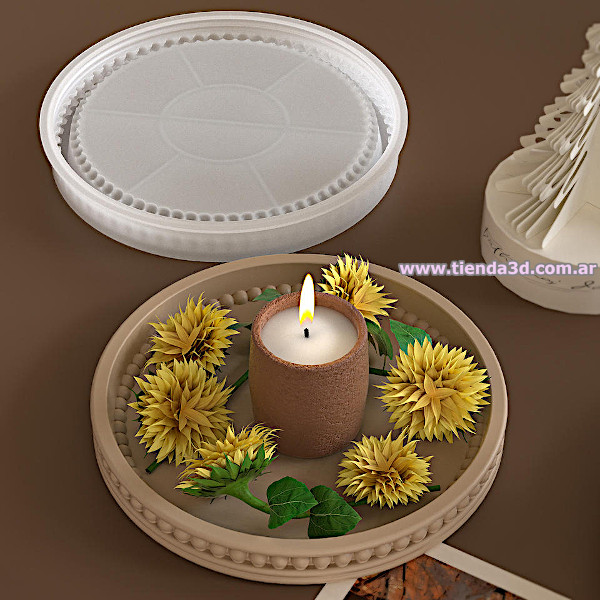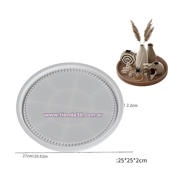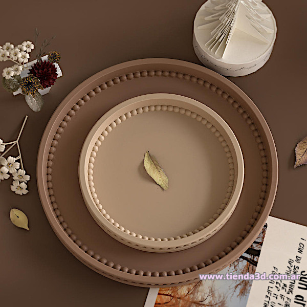 Molde Bandeja/Plato Circular Redondo grande, borde/contorno con cuentas, bolitas, esferas