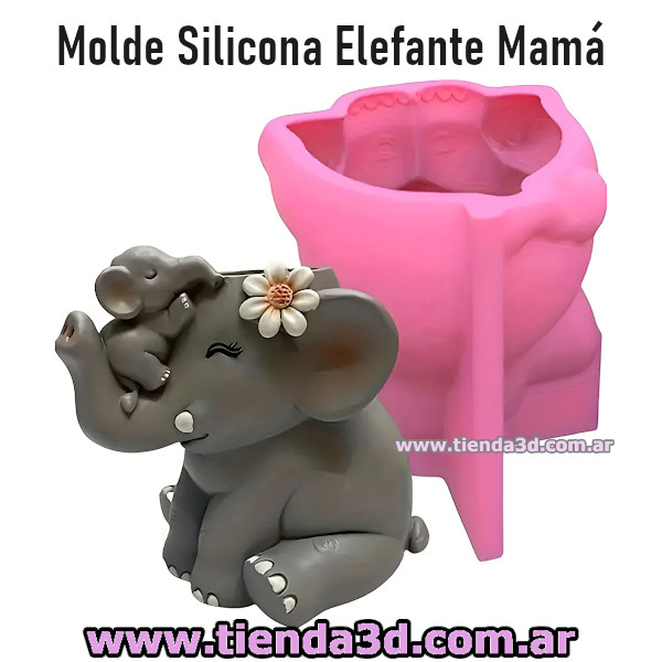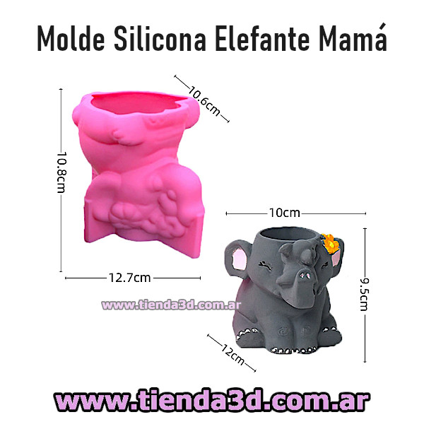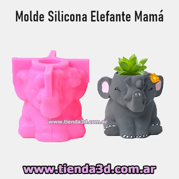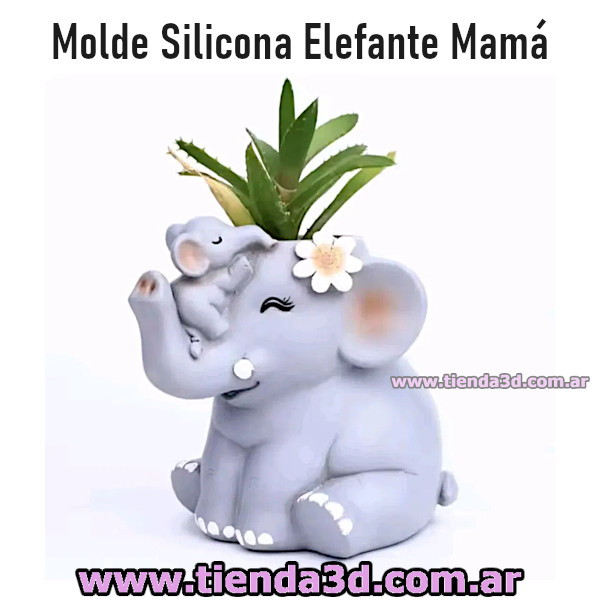 Molde maceta mamá elefante con su elefantito, familia, animal, animales